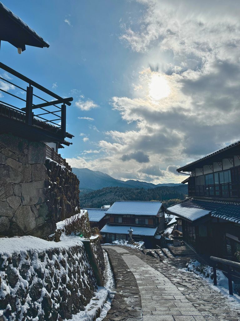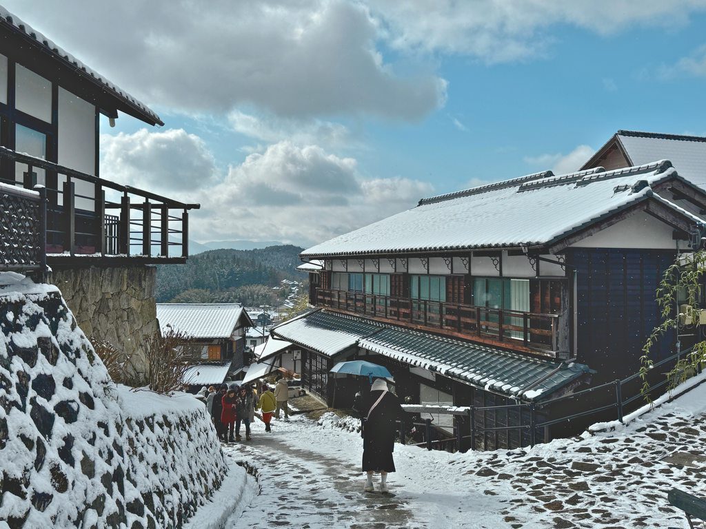 但如果雪積很厚,從巴士下車點到馬籠宿行經的小路會不太好走,容易滑倒。