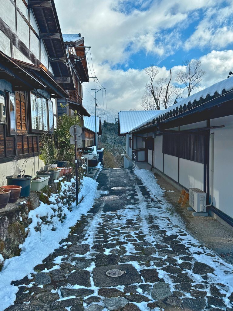 當時來馬籠宿的時候,日本大寒,各地都下超多雪,這邊很多店家就是看心情開店、關店。