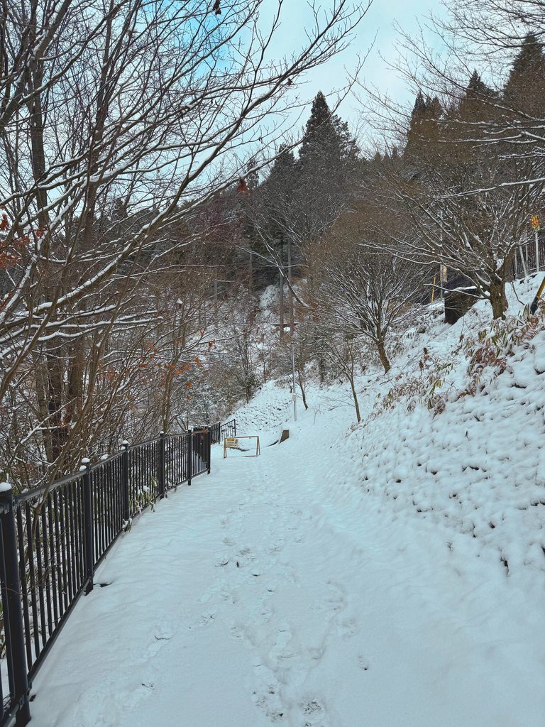雪景從上面看真的蠻漂亮的,可以看到整個坡道都白白的,有種走在山城裡的感覺。