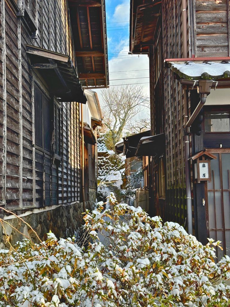 白雪蓋著老房子,整體畫面很乾淨,整個像是穿越道江戶時代的感覺,不過看到遊客就出戲了(笑